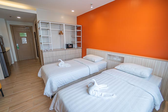 - お部屋のベッドはすべてツイン(シングル)です。